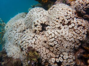 As espécies que mais sofreram foram justamente aquelas que dão tridimensionalidade aos recifes, servindo de abrigo e local de reprodução para inúmeras outras espécies. Entre elas, o coral-de-fogo (Millepora alcicornis) perdeu 54% de sua cobertura, e o coral-vela (Mussismilia harttii), endêmico e ameaçado, sofreu queda de 28%. Esse padrão repete o observado no evento regional de 2019–20, reforçando que essas espécies continuam sendo as mais vulneráveis ao aquecimento. “Perder essas espécies significa reduzir a complexidade dos recifes. Menos estrutura quer dizer menos diversidade, e isso se traduz em menos pescado e menos renda para comunidades costeiras que dependem desses ambientes”, destaca Miguel.
